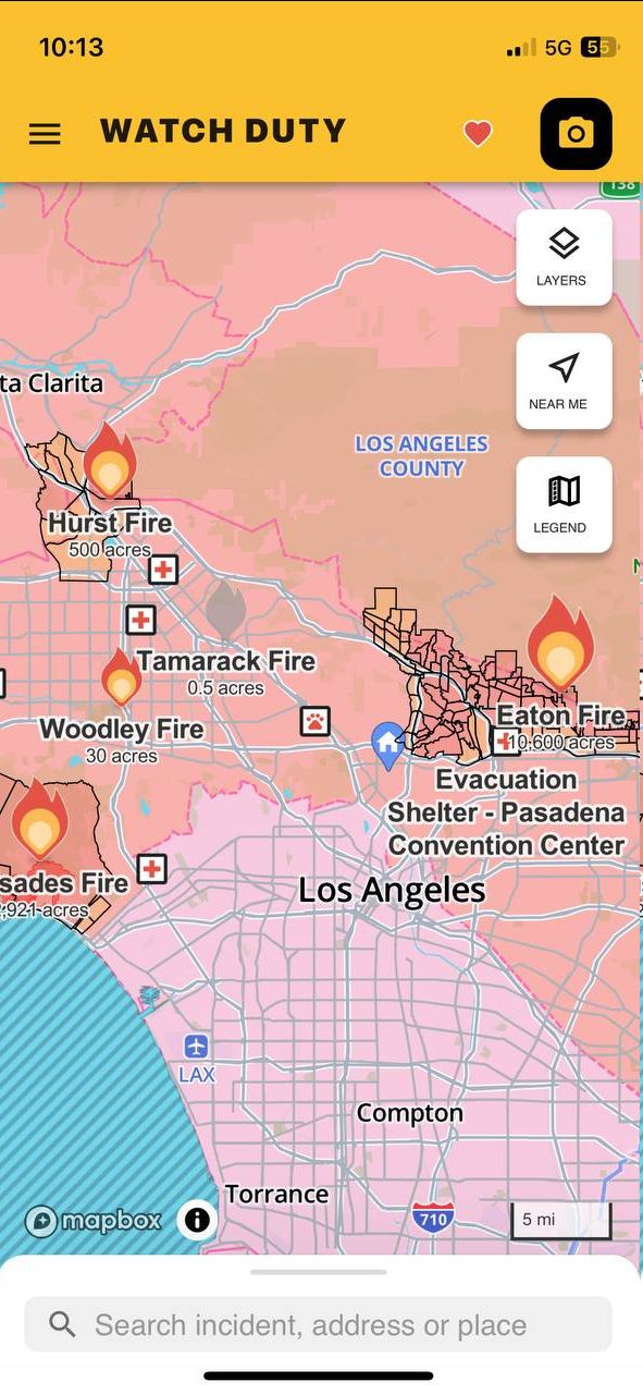 I "went to bed" glued to the Watch Duty app. I watched as this new Eaton fire crept toward our apartment. I kept getting pings of new evacuation zones, seemingly all heading in our direction. The winds were the loudest I'd ever heard them. Between the updates on the fire and the noise from outside, I was not sleeping at all. I finally did for a few hours after reluctantly deciding to sacrifice some of my phone battery on a white noise app.